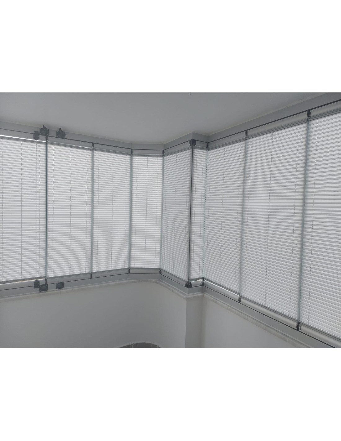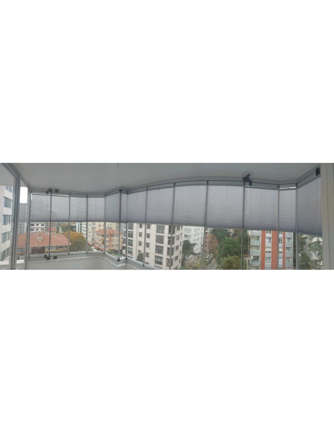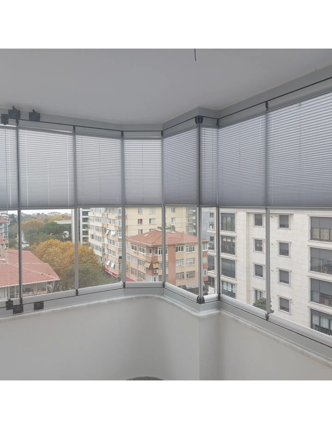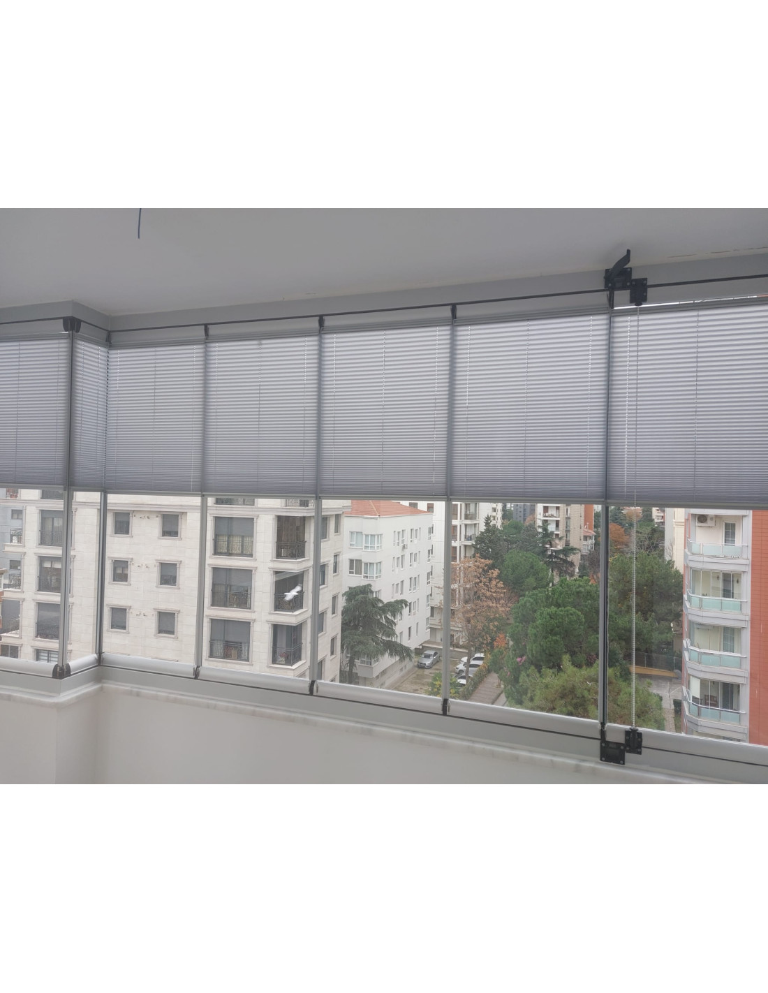 Plise Cam Balkon Perdesi, özel plise tasarımıyla cam balkonunuzu şık bir şekilde tamamlar. Farklı renk seçenekleri ve beyaz, krem, antrasit gibi kasa renkleriyle mekanınıza uyum sağlar. Ayarlanabilir montaj ayağı seçenekleri ile kullanım kolaylığı sunar.