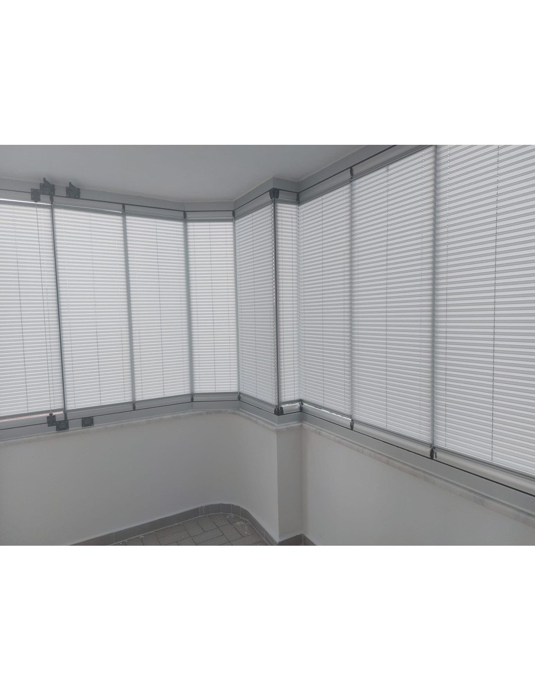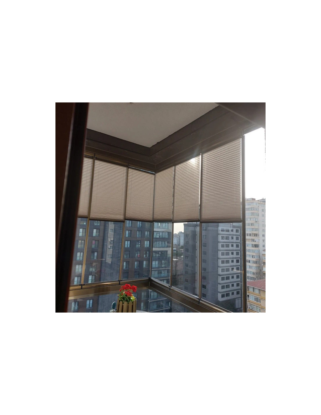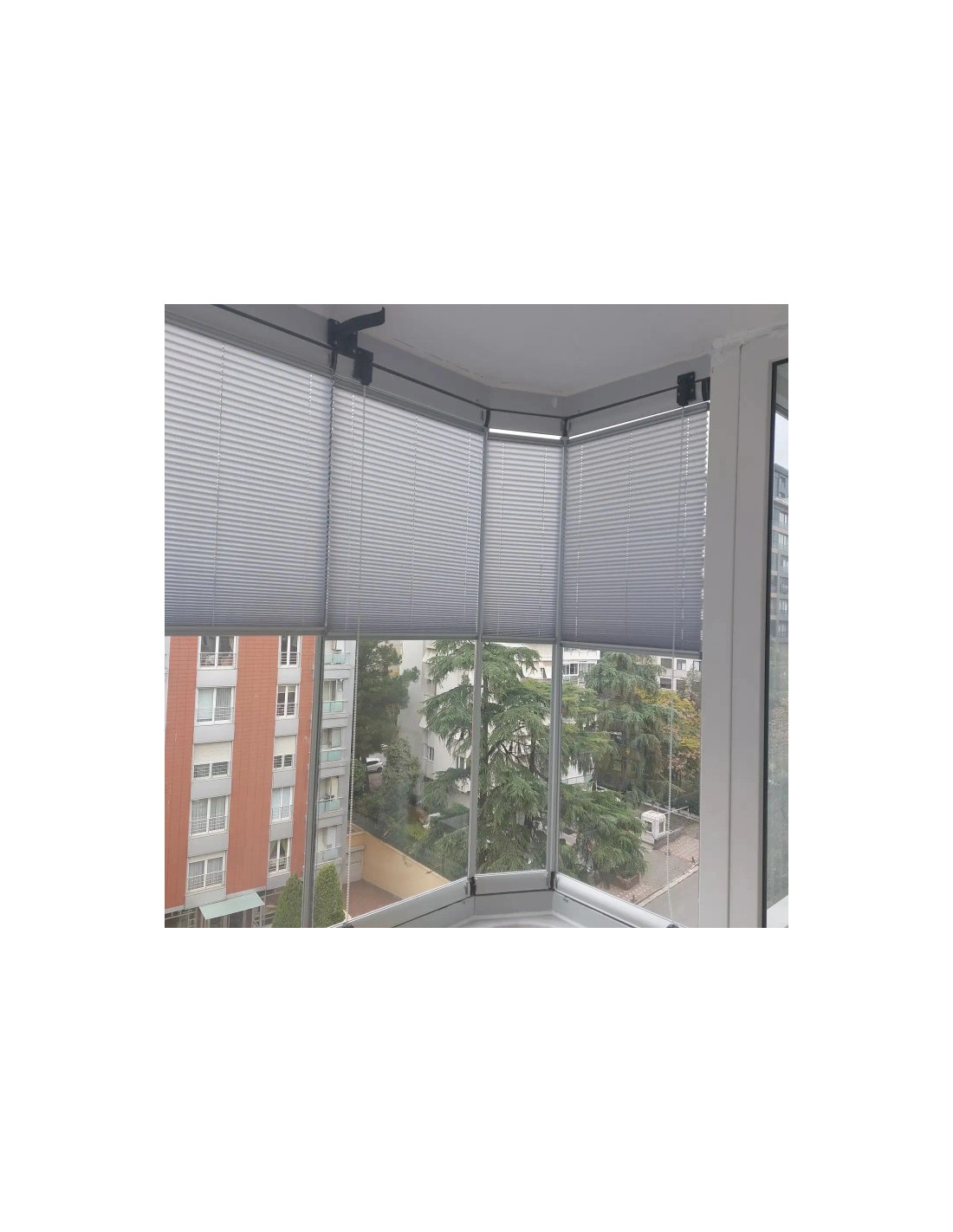 Plise Cam Balkon Perdesi, özel plise tasarımıyla cam balkonunuzu şık bir şekilde tamamlar. Farklı renk seçenekleri ve beyaz, krem, antrasit gibi kasa renkleriyle mekanınıza uyum sağlar. Ayarlanabilir montaj ayağı seçenekleri ile kullanım kolaylığı sunar.