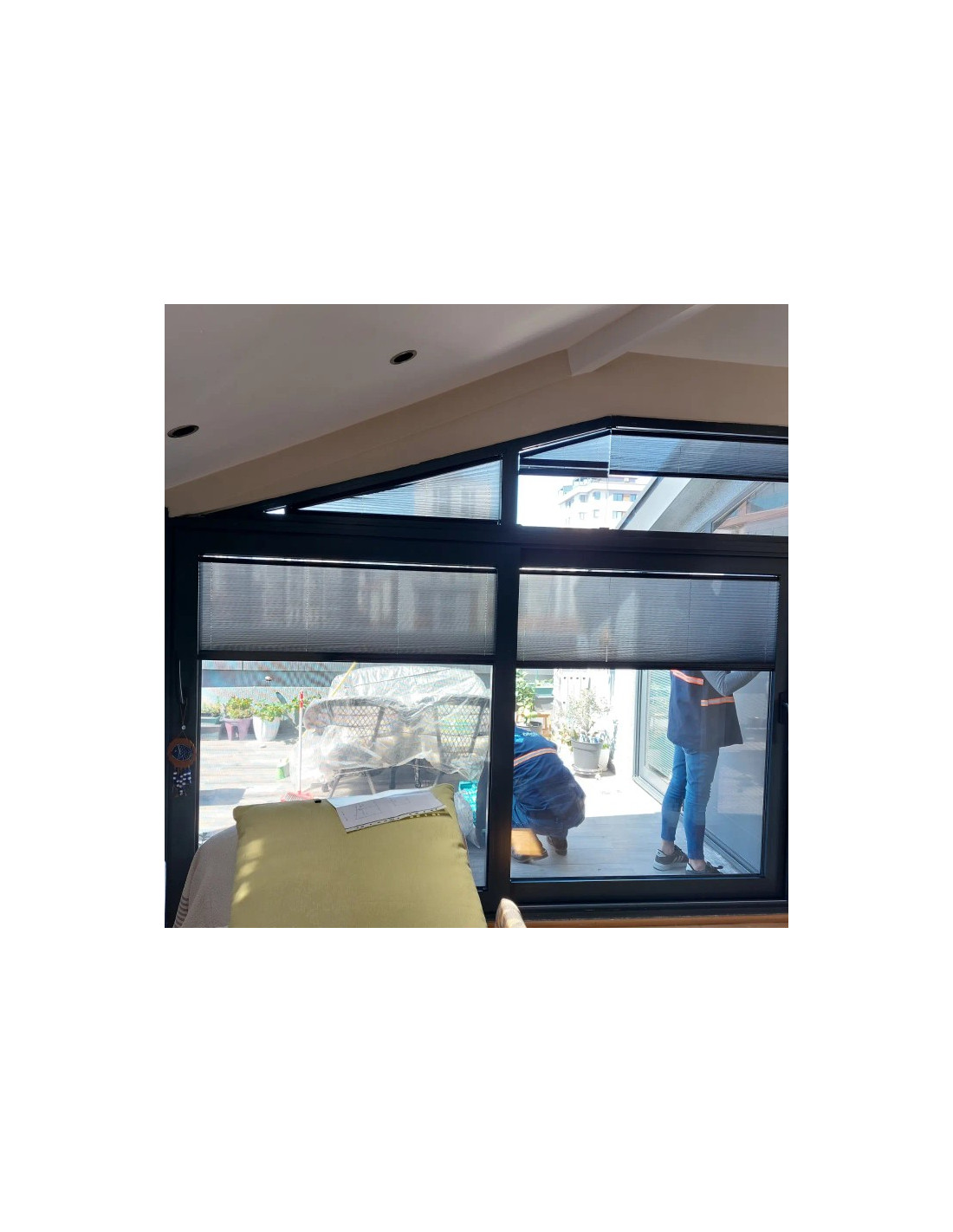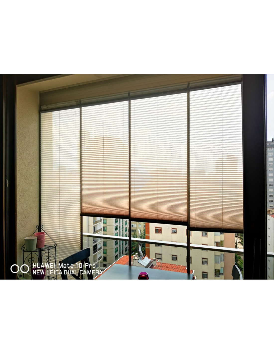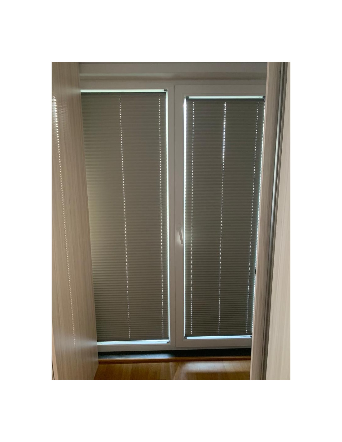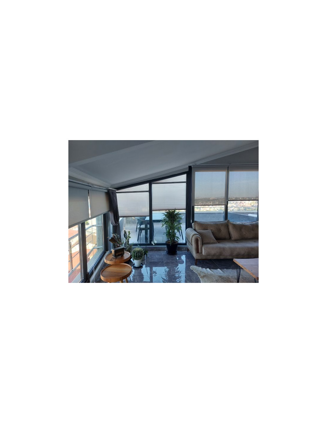 Plise Cam Balkon Perdesi, özel plise tasarımıyla cam balkonunuzu şık bir şekilde tamamlar. Farklı renk seçenekleri ve beyaz, krem, antrasit gibi kasa renkleriyle mekanınıza uyum sağlar. Ayarlanabilir montaj ayağı seçenekleri ile kullanım kolaylığı sunar.