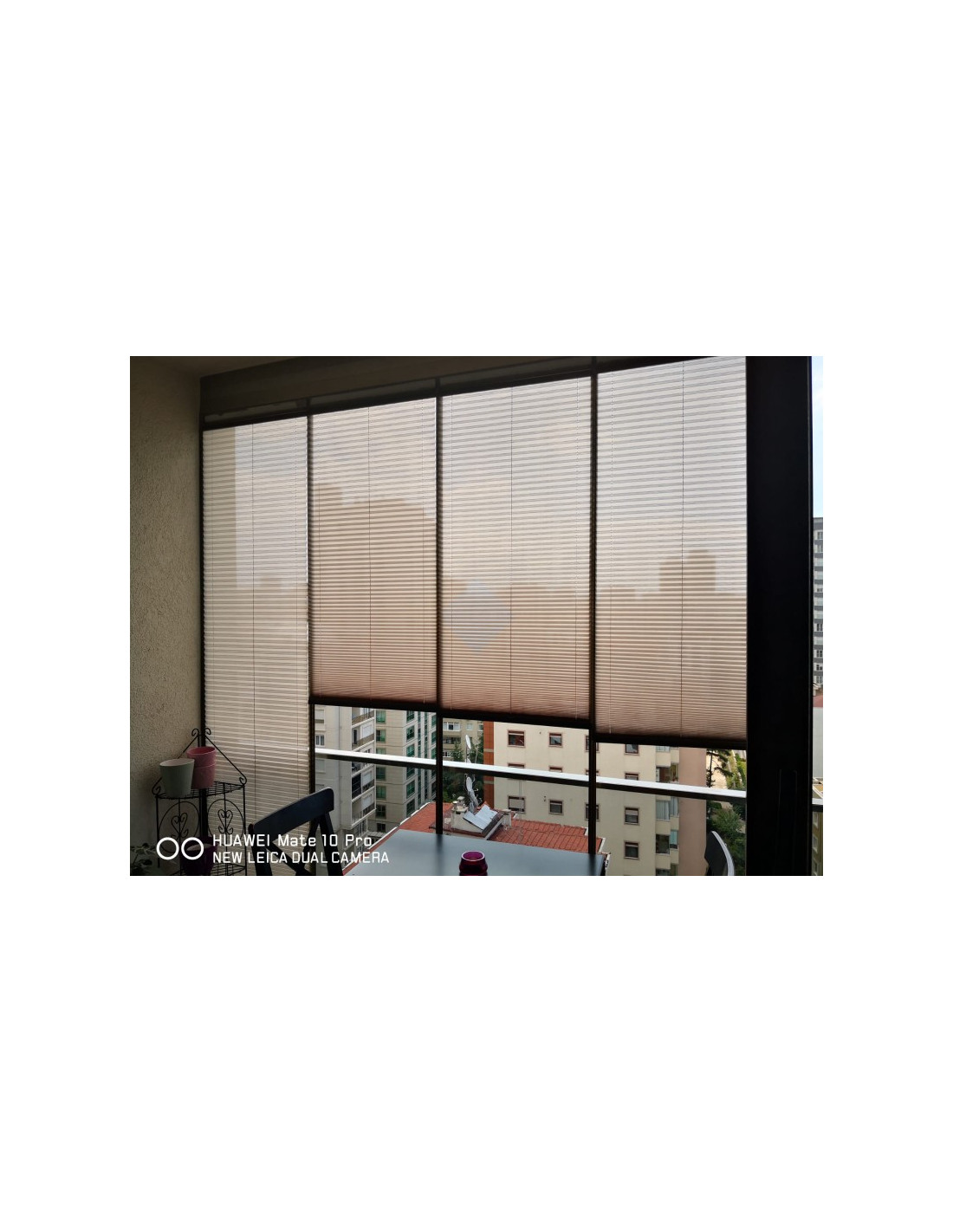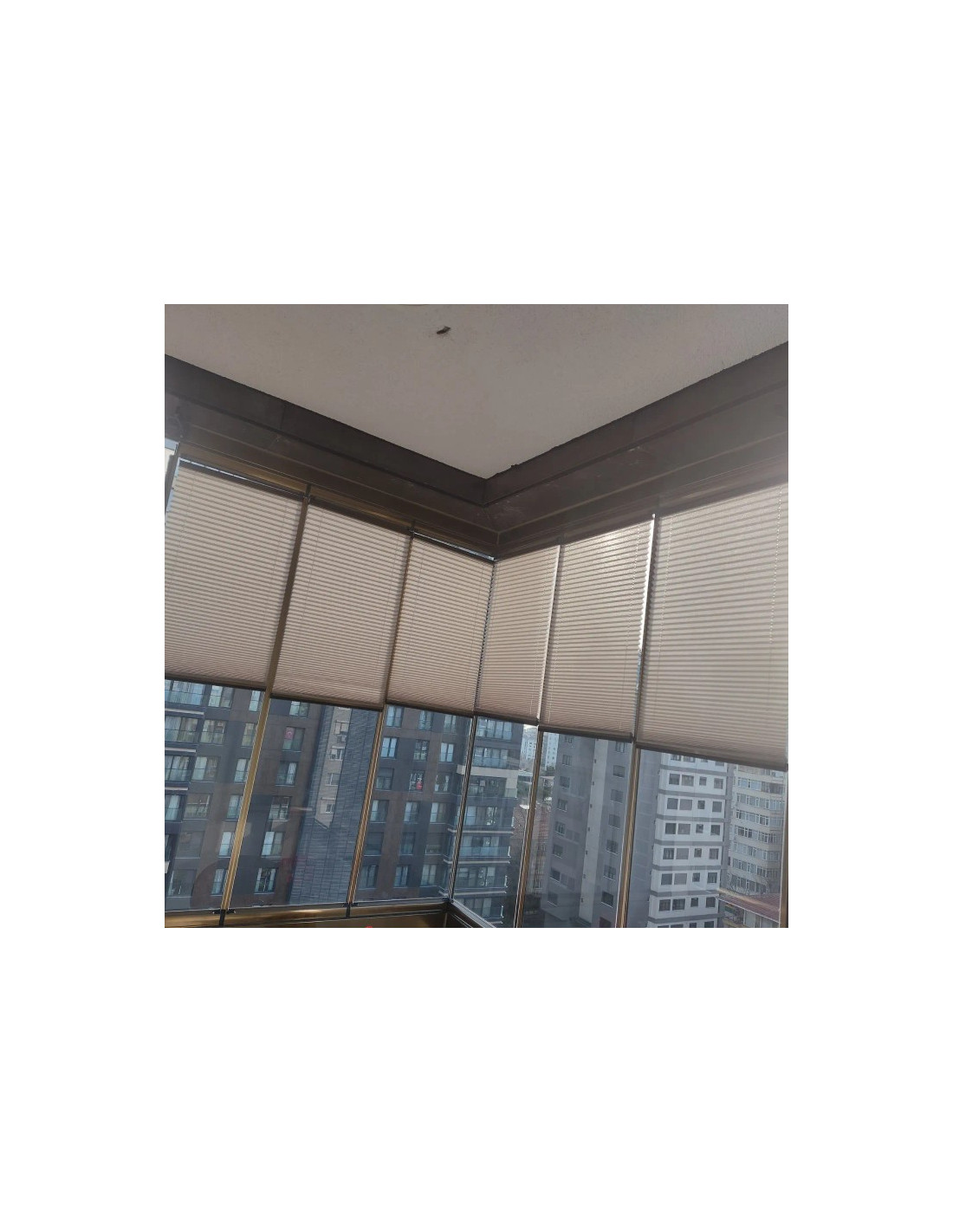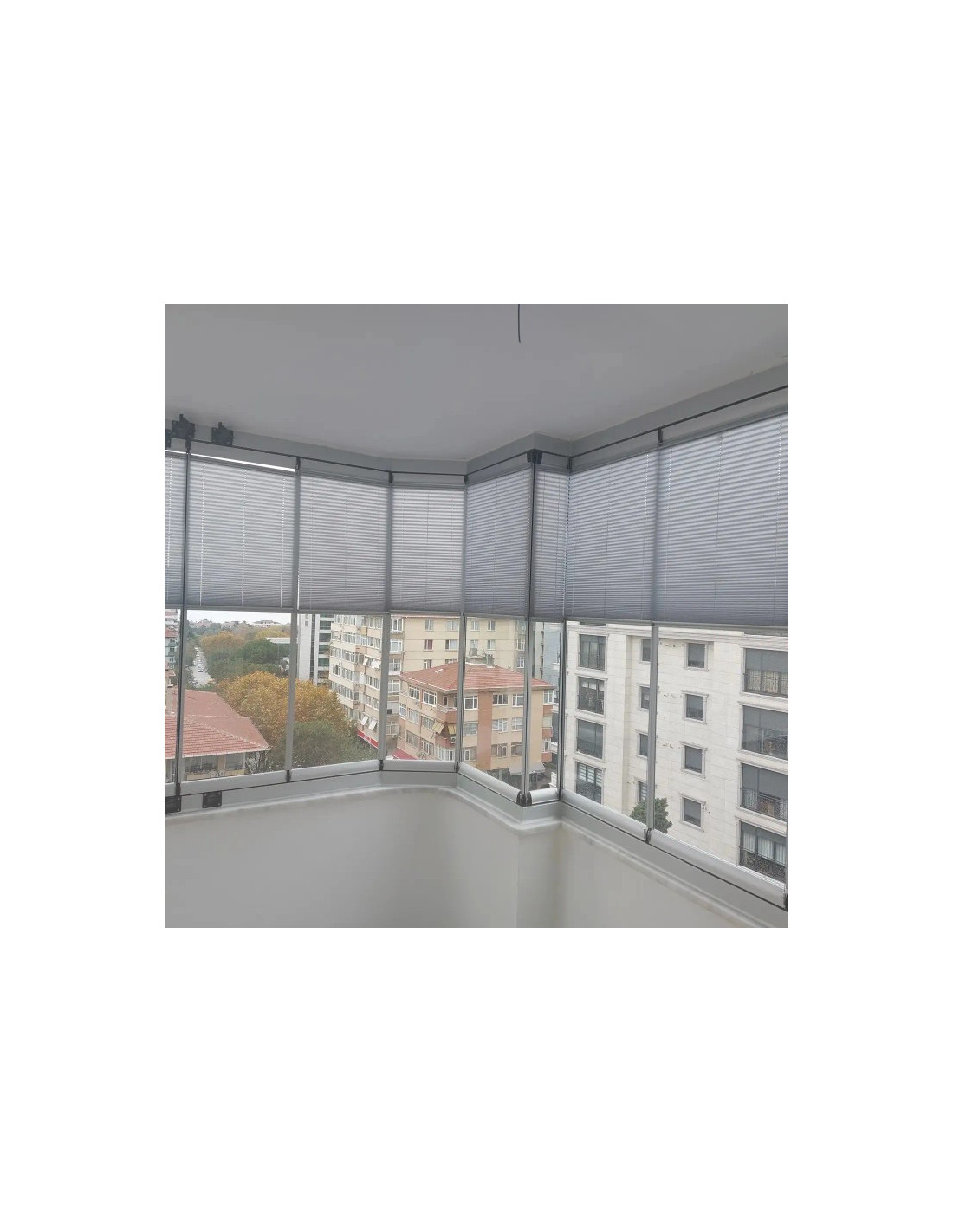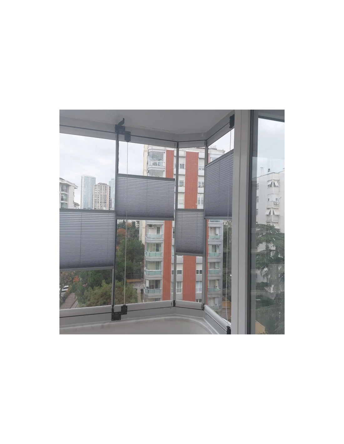 Plise Cam Balkon Perdesi, özel plise tasarımıyla cam balkonunuzu şık bir şekilde tamamlar. Farklı renk seçenekleri ve beyaz, krem, antrasit gibi kasa renkleriyle mekanınıza uyum sağlar. Ayarlanabilir montaj ayağı seçenekleri ile kullanım kolaylığı sunar.